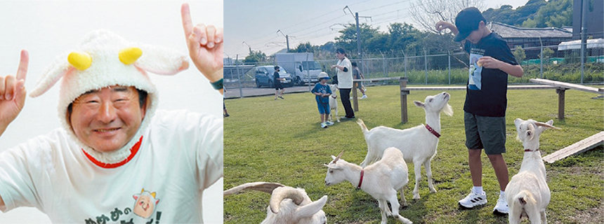 直営の宮崎本園では月に1回、ヤギに触れるイベント「ふれあいデー」を開催している。昨年のふれあいデーには年間で1998人が来場し、地域住民の憩いの場となった。また、小学生の地域企業探求や中学生の職場体験、高校生のSDGs学習のように教育の場としても活用されており、地域貢献にも繋がっている。幅広い年代が集まるため、保険業や建築業、教育関連企業や終活関連事業など多様な地域企業が協賛し、地域を活性化する事業の1つになっている。